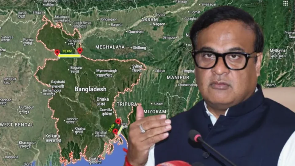 बांग्लादेश के कुछ छुटभैये नेताओं द्वारा भारत के सिलीगुड़ी कॉरिडोर (चिकन नेक) को लेकर बार-बार दिए जा रहे बयानों पर अब तीखी प्रतिक्रिया सामने आई है। असम के मुख्यमंत्री हिमंत बिस्वा सरमा ने सोशल मीडिया प्लेटफॉर्म एक्स पर एक पोस्ट के जरिए न केवल तथ्यों की याद दिलाई, बल्कि मैप के साथ बांग्लादेश के दो बेहद संवेदनशील ‘चिकन नेक कॉरिडोर’ भी दुनिया के सामने रख दिए।