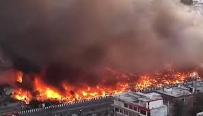 आग इतनी तेज थी कि आसमान में काले धुएं का गुबार कई किलोमीटर दूर तक दिखाई दिया। इस हादसे ने सैकड़ों परिवारों को बेघर कर दिया और पूरे इलाके में अफरा-तफरी मच गई।